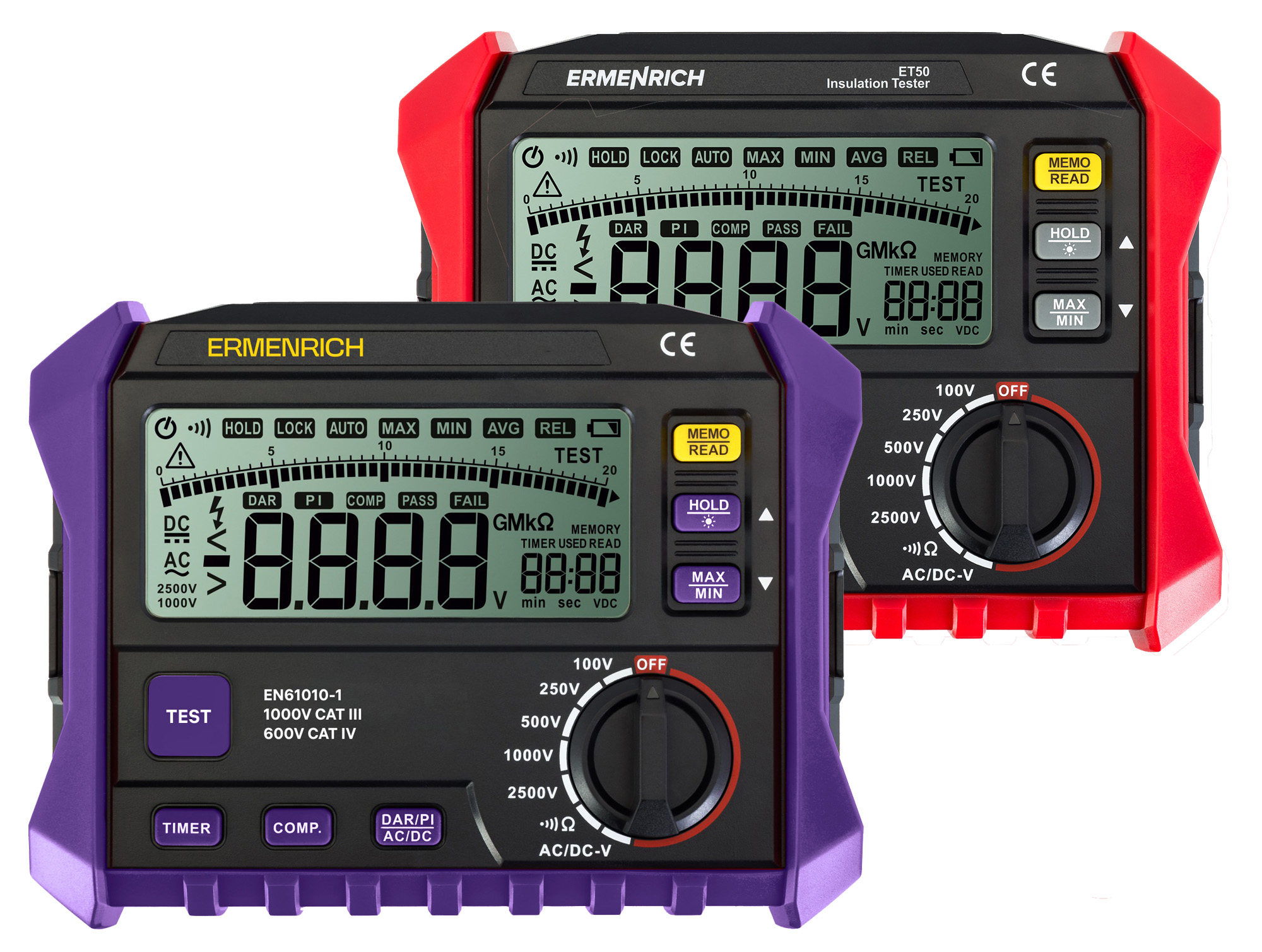 Az Ermenrich Ping ET50 egy szigetelési ellenállás-vizsgáló (más néven megaohmméter), amellyel a kábelek minősége ellenőrizhető. A feszültség alatt álló kábelek szigetelésének károsodása vagy minőségromlása rövidzárlatokhoz és tűzesetekhez vezethet. A megaohmméterrel történő rendszeres ellenőrzés csökkenti az ilyen veszélyes helyzetek előfordulásának a kockázatát. Az eszköz 5 tesztfeszültséggel működik: 100, 250, 500, 1000 és 2500 V. A teljes ellenállásmérési tartomány: 0–200 GΩ.